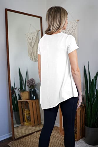 • FASHION & STYLE - Our Tunic Swing Top has a great stretch that creates a flattering silhouette due to its unique asymmetrical flowy hem style. It features V-Neck in Short Sleeves cut that covers your upper arms and it has loose long length that is perfect to wear with leggings. Easy styling with any kinds of bottoms or even for layering!