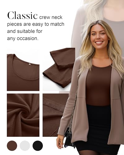 3 Pack Women's Plus Size Shirts Tops Scoop Neck Long Sleeve Cotton Tee Slim Fitted Stretchy Casual Basic Fall Blouse 6