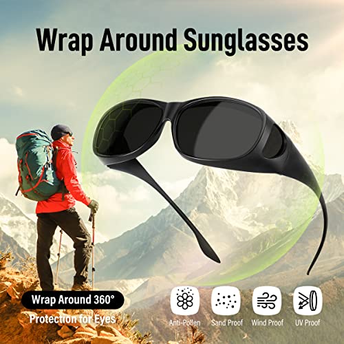 HOT ! Bloomoak Polarized Super Dark Sunglasses/Wrap Around Over Glasses -Category 4/UV 400 Protection For Sensitive/Photophobia