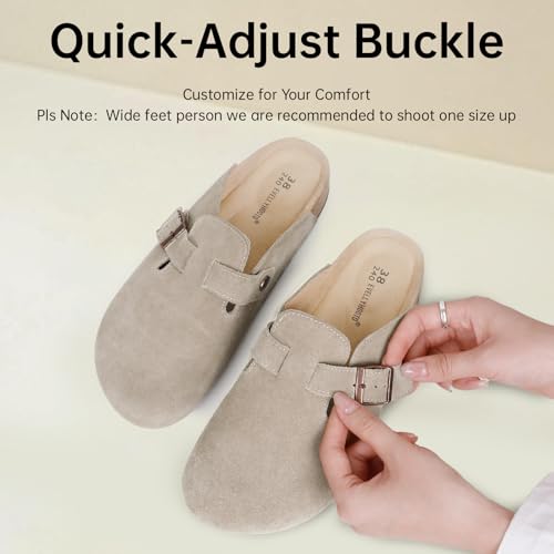 • Classic Cork Clogs: Featuring a soft and breathable 100% genuine suede leather look with an adjustable metal buckle strap, the potato shoes also come with socks. Super flattering with spring, summer, fall and winter outfits. All-day comfort for both men and women.