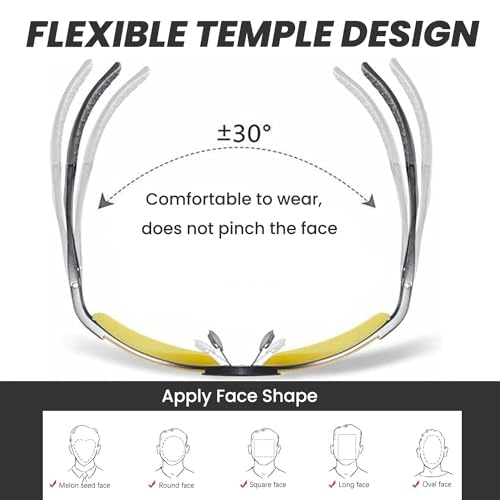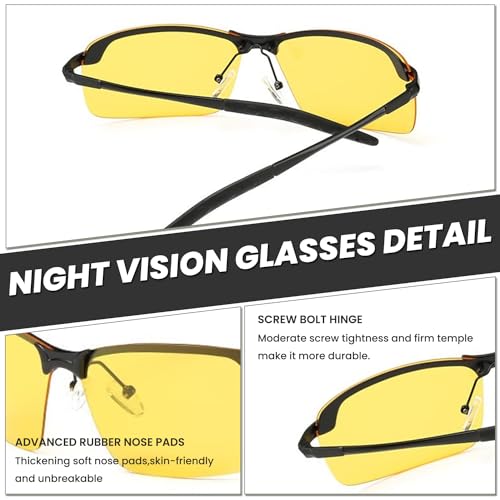 • Anti-glare yellow lenses provide greater clarity in darkness and other low-light conditions, reducing glare from car lights, improving night driving performance. Night vision glasses with yellow lenses are perfect for driving. Especially at night, on rainy or foggy days.
