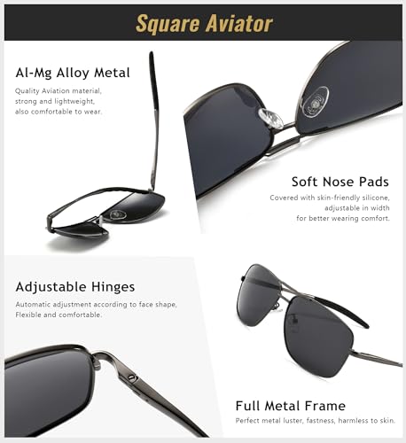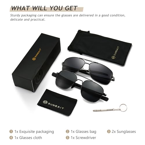 HOT ! SUNGAIT Military Style Polarized Pilot Aviator Sunglasses and Square Aviator Sunglasses for Men UV400 Protection