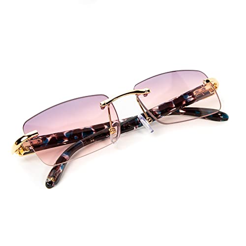 More information about Street Knitted Men's Red Burgundy Gradient Tint Rimless Hip Hop Gold Frame Buffs Sunglasses