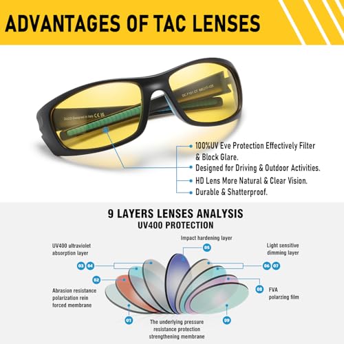 DUCO Night Vision Fishing Glasses Anti Glare Polarized Yellow Lens for Men Women Ideal for Nighttime Fishin and Driving 5