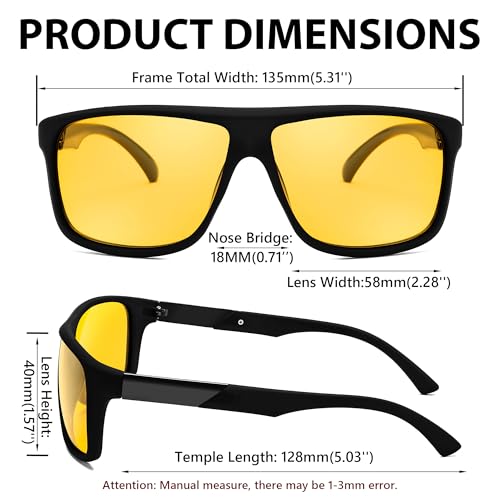 • 【HD Night Vision Lens】polarized yellow tinted lens with special anti-reflective coating, effectively reduce glare caused by oncoming intense headlights and bright streetlights, enhance night clarity and alleviate eye fatigue, making night driving safer
