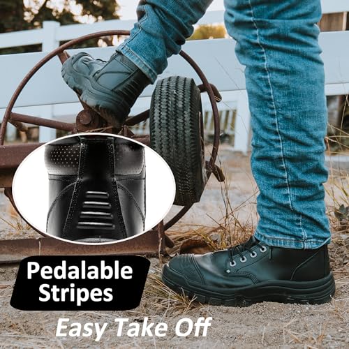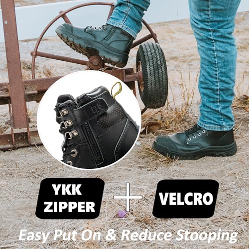 ROCKROOSTER Madison 6" Steel Toe Work Boots for Men with YKK Side Zipper Toe Cap Non-Slip Rubber Outsole, Comfortable Side Zip Lightweight Breathable Leather Shoes, Metal, ASTM F2413-18 M/I/C EH AK052 6