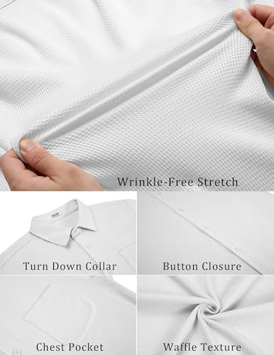 • WAFFLE TEXTURED: COOFANDY Men's Knit Button Down Shirt offers a knit and wrinkle-free design, making it softer, more elastic, wrinkle-free, comfortable, skin-friendly, lightweight, moisture wicking; Keeps you looking fresh and feeling cool, even on the hottest days