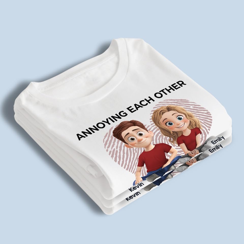 DOPTIKA Personalized Couple Tshirts for Anniversary, Christmas Romantic Gifts for, Couples, Annoying Each Other Since Shirt 4