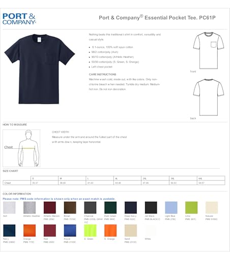 HOT ! Port & Company - Tall Essential Pocket Tee. Pc61pt