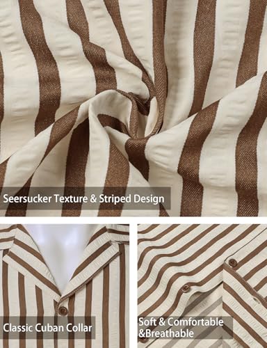 Men's Classic Striped Seersucker Cuban Collar Shirt Short Sleeve Button Down Texture Shirts for Beach Vacation 6