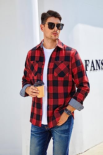 WARHORSEE Flannel Shirt for Men Long Sleeve Regular Fit Button Down Casual Plaid Shirt 3