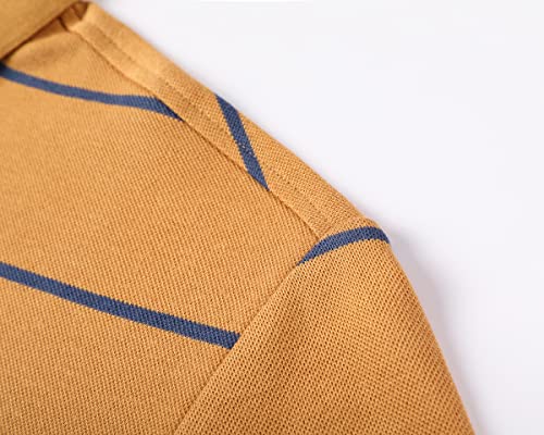 Mens Casual Cotton Striped Slim Fit Long Sleeve Collared T Shirt Polo Shirts 6