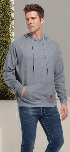 More information about VICT POPU Hoodies For Men Pullover Long Sleeve hooded Plaid Jacquard With Big Pockets Solid Color Sweatshirt