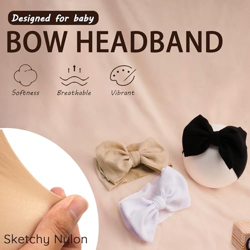 Baby Headbands 3 Pcs Stretchy Nylon Headbands with Bows for Baby Girl Bows Hair Accessories for Newborns, Infants, Toddlers 7