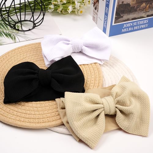 Baby Headbands 3 Pcs Stretchy Nylon Headbands with Bows for Baby Girl Bows Hair Accessories for Newborns, Infants, Toddlers 6