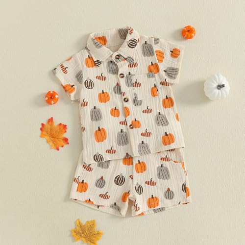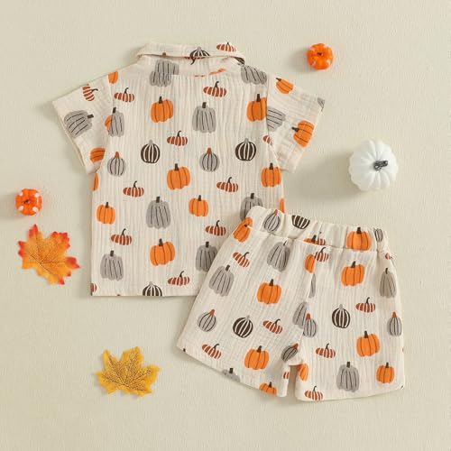 • Package: 1 x Toddler baby boy halloween outfit pumpkin print cotton gauze short sleeve button up shirt and shorts set 2 piece fall clothes.halloween outfit for baby boy, halloween outfits for toddler boys, toddler boy pumpkinclothes set is really nice gifts for Halloween, your baby boys must love it