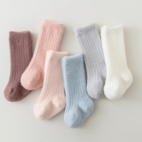 6 Pairs Plush Baby Socks for Warm Autumn Winter, Thick Newborn Infant Mid Calf Socks with Loose Comfort Fit 7