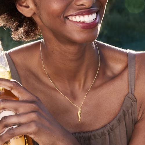 • GENUINE 10KT GOLD — 10kt yellow gold Italian horn pendant necklace. Polished finish. 18 in. long. Pendant is 1/4 in. wide. 1mm cable chain. 1.1 grams. Springring clasp.