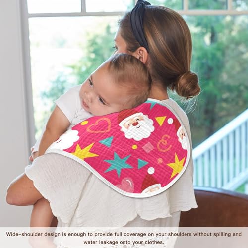 2 Pack Muslin Burp Cloths Christmas Santa Magenta Cotton Baby Burp Cloths Ultra Absorbent Burping Cloth Soft Spit Up Rags for Newborn Babies Boys Girls, Large 22" x 11" 5