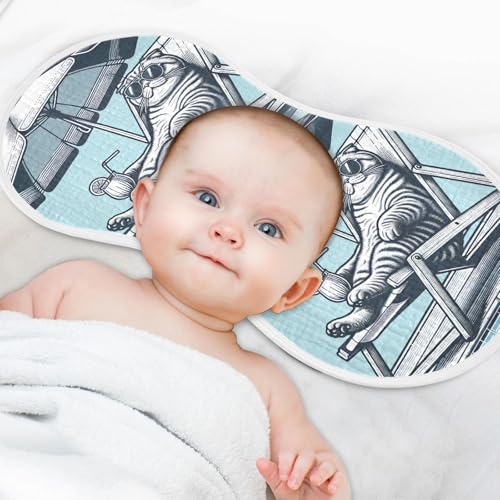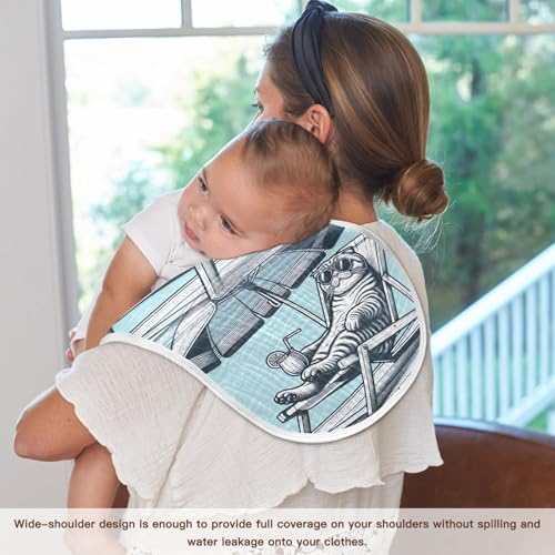 Muslin Burp Cloth for Baby 4PCS Cat Laying on Beach Chair Super Absorbent Burping Cloths, Bibs for Newborn Boys Girls 6