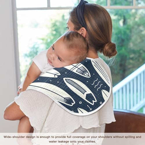 Muslin Burp Cloth for Baby 2PCS Surfboards Super Absorbent Burping Cloths, Bibs for Newborn Boys Girls 6