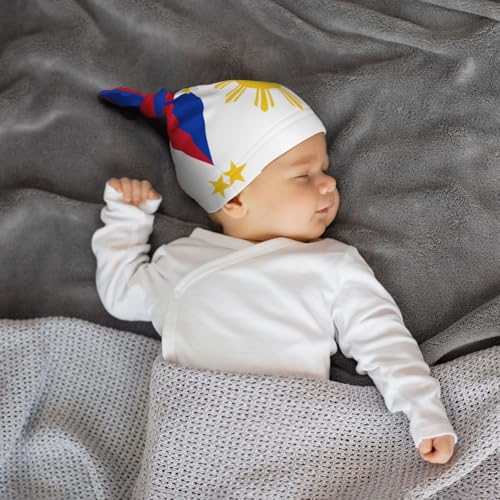 Newborn Baby Hat, Philippine Flag Print Soft Top Knot Beanie Cap, Cute Baby Headwear for 0-6 Months Black 6