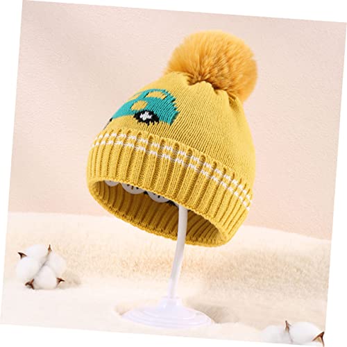 Gatuida Cartoon Car Baby Knit Hat with Plush Ball Winter Warm Hat for Boys and Girls Soft and Cozy Toddler Beanie for Infants and Newborns for Cold Weather Yellow 6