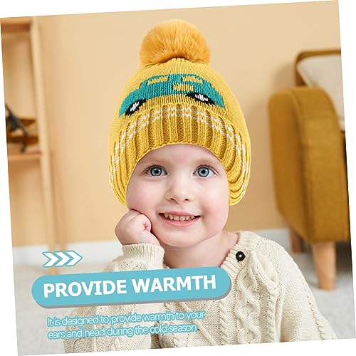 Gatuida Cartoon Car Baby Knit Hat with Plush Ball Winter Warm Hat for Boys and Girls Soft and Cozy Toddler Beanie for Infants and Newborns for Cold Weather Yellow 7