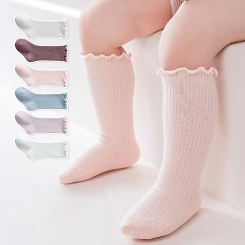 6 Pairs Baby Toddler Knee Hight Ruffle Socks Infant Kids Boys Girls Cotton Socks 6
