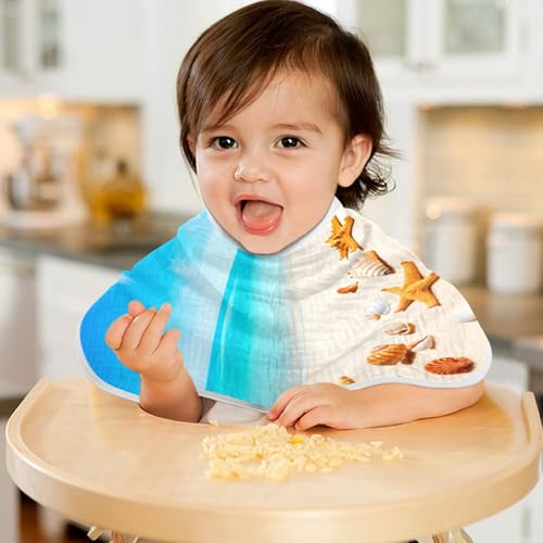 J JOYSAY Starfish Beach Sand Beige Baby Burp Cloths for Boys Girls Large 22''x11'' Cotton 4 Layer Burp Cloths for Girl Spit Up one sizex2 5