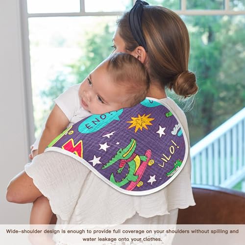 xigua Crocodiles Muslin Baby Burp Cloths Set of 2, Super Soft & Absorbent Burping Rags, Cotton Burp Clothes Shower Gift for Newborn, Baby Girls and Boys 5