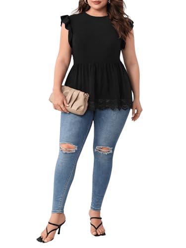 SHENHE Women's Plus Size Backless Top Tie Back Short Sleeve Ruffle Lace Tank Peplum Top Elegant Blouse Shirt 4