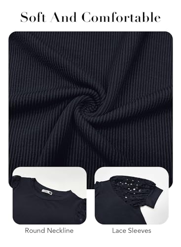 More information about DOROSE Women's Puff Sleeve Tops Lace Casual Loose Summer Blouses T Shirt