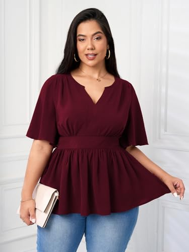 • Design: Plus size tops for women feature with v neck, pleated design, elastic waistband, loose flowy hemline, ruffle short sleeve, this plus size top is stylish and trendy