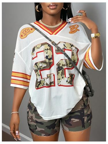 More information about Women's Number Graphic Jersey Shirts Striped Half Sleeve V Neck Loose Casual T Shirt