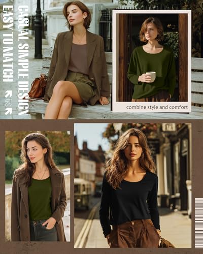 • Comfy Material: our scoop neck long sleeve tops for women are made of 60% Polyester, 35% Cotton, 5% Spandex, soft, comfy and stretchy; The fabric is lightweight and warm to keep you comfortable and free in fall winter without feeling of bulky and heavy