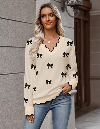Zeagoo Women's 2025 Fall V Neck Sweater Casual Long Sleeve Lightweight Ribbed Knit Pullover Sweaters Dressy Casual Tops 2