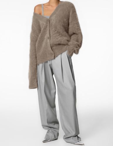 Yimoon Womens Fuzzy Cardigan Sweater V Neck Long Sleeve Button Down Slouchy Furry Knit Sweaters 2025 2