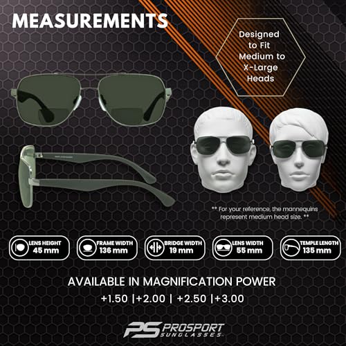 HOT ! proSPORT Polarized Bifocal Reading Sunglasses for Men and Women. Near invisible line Reader Sunglasses. For Outdoor Reading, Driving and Sports