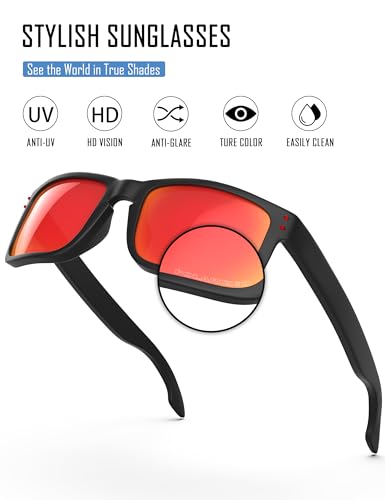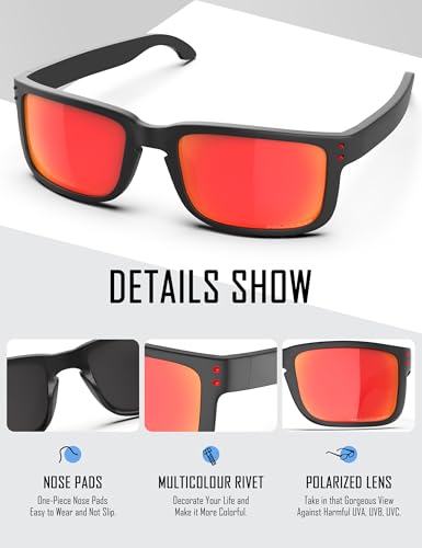 • [100% POLARIZED&UV-Proof Lens] - Filter out the harshest glare from your sunglasses, enhanced colors, vividly defined contrasts & balanced clarity, against more than 99% harmful UVA, UVB, UVC rays.