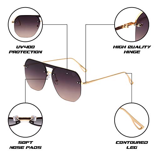 More information about Khan Mirage - Rimless Flat Geometric Shield Lens Stud Aviator Sunglasses