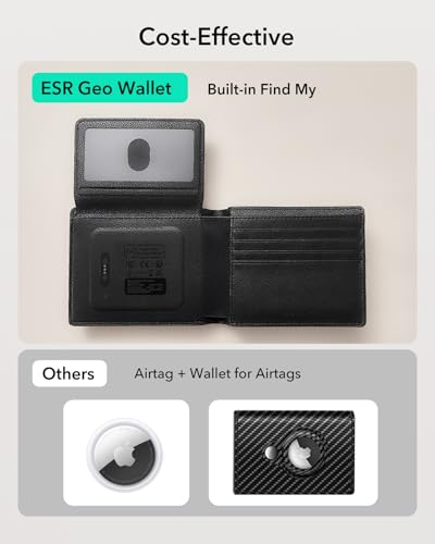 HOT ! ESR Geo Wallet with Find My, RFID Blocking, Wallet for Men, Wallet Tracker(iOS 14.5 Above Only), Holds 9 Cards and 15 Bills, Replacement for AirTag Wallet, Slim Bifold Card Holder, Twillingt Black