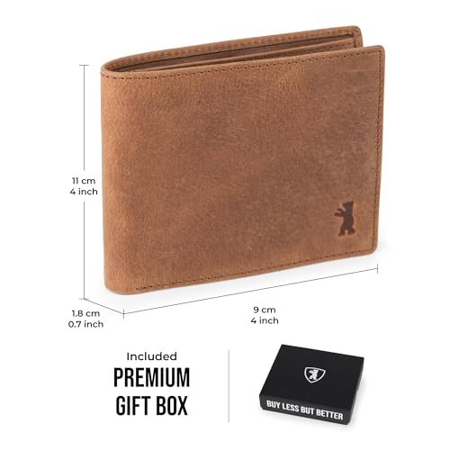 More information about BERLINER BAGS Vintage Genuine Leather Wallet for Men Brooklyn, RFID Blocking, Bifold, Front Pocket Slim Wallet, 10 Card Holder, 2 Bills Compartment, 1 Gift Box - Brown