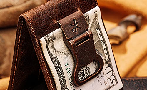 HOT ! House of Jack Co. Bottle Opener Bifold Money Clip Wallet for Men, Front Pocket Card Holder with Exterior ID Window, Full Grain Cowhide Leather, Brown