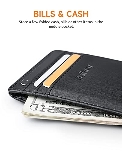 Buffway Mens Slim Wallet, Minimalist Thin Front Pocket Leather Credit Card Holder with RFID Blocking for Work Travel 7