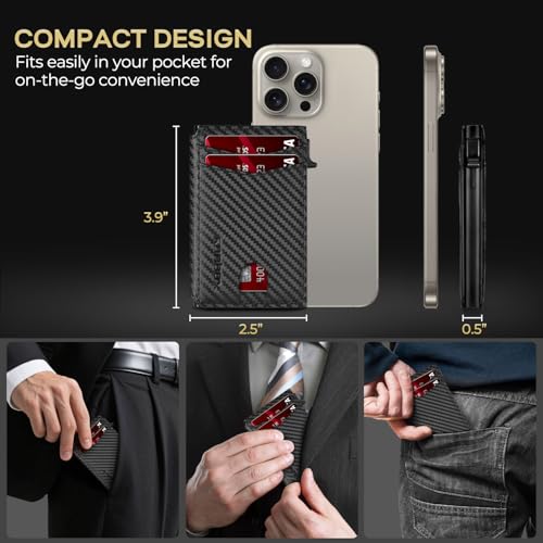 • SLIM WALLET FOR MEN with Ultra Thin & Lightweight Design: At just 0.5" thick and 2.6oz, this minimalist tactical wallet slips seamlessly into any pocket. Dimensions: 3.9"x2.5" – perfect for discrete everyday carry