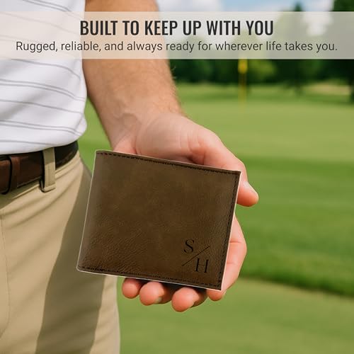 Personalized Initials Faux Leather Wallet for Men | Customized Laser Engraved Slim Bifold Wallet for Men with Flip ID for Bills, Cards | Custom Father's Day Gifts for Dad, Birthday Gift for Man 5