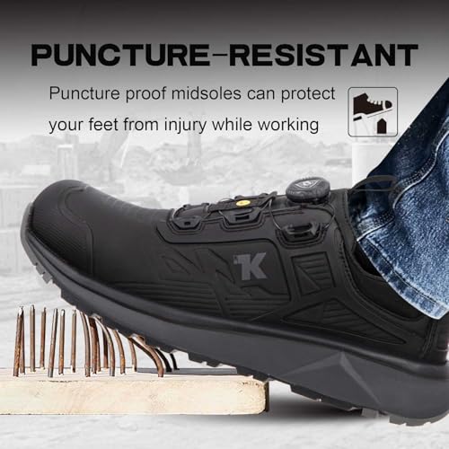 • Heavy Duty Freelock: The lacing system works really well and is much quicker and more secure than tying. K BY KEXIN Aluminum Alloy Toe Steel Toe Composite Toe safety shoes come with the KR FreeLock Dial System which gives you a secure, consistent fit and a luxurious appearance. With the premium rotating buckle, pull out to release, press and rotate clockwise to tighten. It is durable and convenient to put on and take off