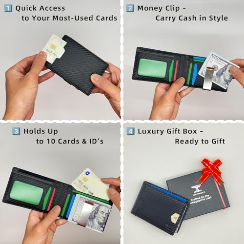 • RFID Blocking Protection: Our RFID wallet for men are equipped with Rfid secure technology;blocks all 13.56MHz+ frequency scans;Unlike basic slim rfid wallet;we completely prevent digital theft of credit cards; IDs;and passports - your personal data stays protected from electronic pickpockets