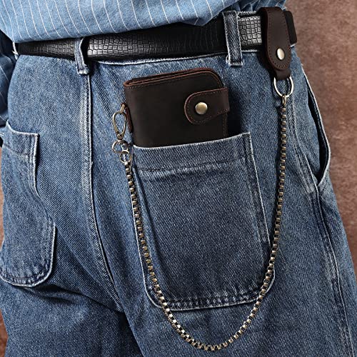 • 【Classic Detachable Metal Chain & Loop】 Embrace the authentic biker aesthetic with the heavy-duty, 19.7-inch (50cm) detachable stainless steel chain. The secure snap-on leather belt loop keeps your wallet safely tethered during rides. Easily remove the chain for a sophisticated, classic wallet look in more formal settings.